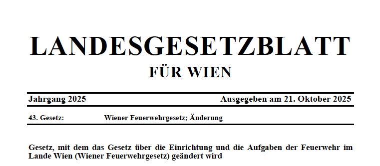 Wr. Feuerwehrgesetz novelliert von presse-lvb-btf | Okt. 30, 2025 | Aktuelles | 0 Kommentare Details vorweg: https://ris.bka.gv.at/eli/lgbl/WI/2025/43/20251021?Abfrage=LgblAuth&Lgblnummer=43%2f2025&Bundesland=Wien&BundeslandDefault=Wien&FassungVom=&SkipToDocumentPage=True&ResultFunctionToken=6b673e3f-7a83-4798-9d8a-2508508ac015 Kommentar absenden Antwort abbrechenDeine E-Mail-Adresse wird nicht veröffentlicht. Erforderliche Felder sind mit * markiertKommentar * Name * E-Mail * Website Meinen Namen, meine E-Mail-Adresse und meine Website in diesem Browser für die nächste Kommentierung speichern.